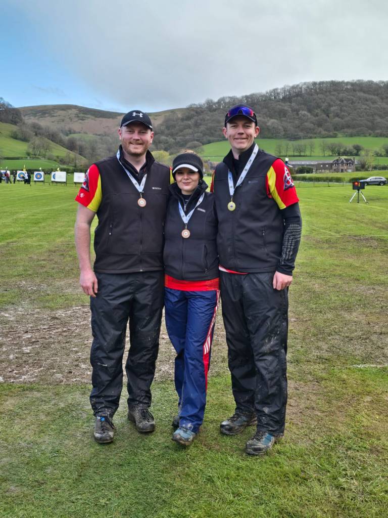 This weekend seen 3 archers away at the first of this year’s outdoor competitions. They travelled to Long Mynd archery in Church Stretton, near Shrewsbury for 2-day shoot. Nicknamed the “Blow Away the Cobwebs” shoot, it is a good chance to test your setup and transition from the shorter indoor ranges to the longer outdoor competitions for the summer month. However, as is the risk with April weather in the British Isles, and very unlike the shorts and sunglasses weather of this weekend in 2025, the archers were treated to the full spectrum of sun, wind, rain, sleet and mud.